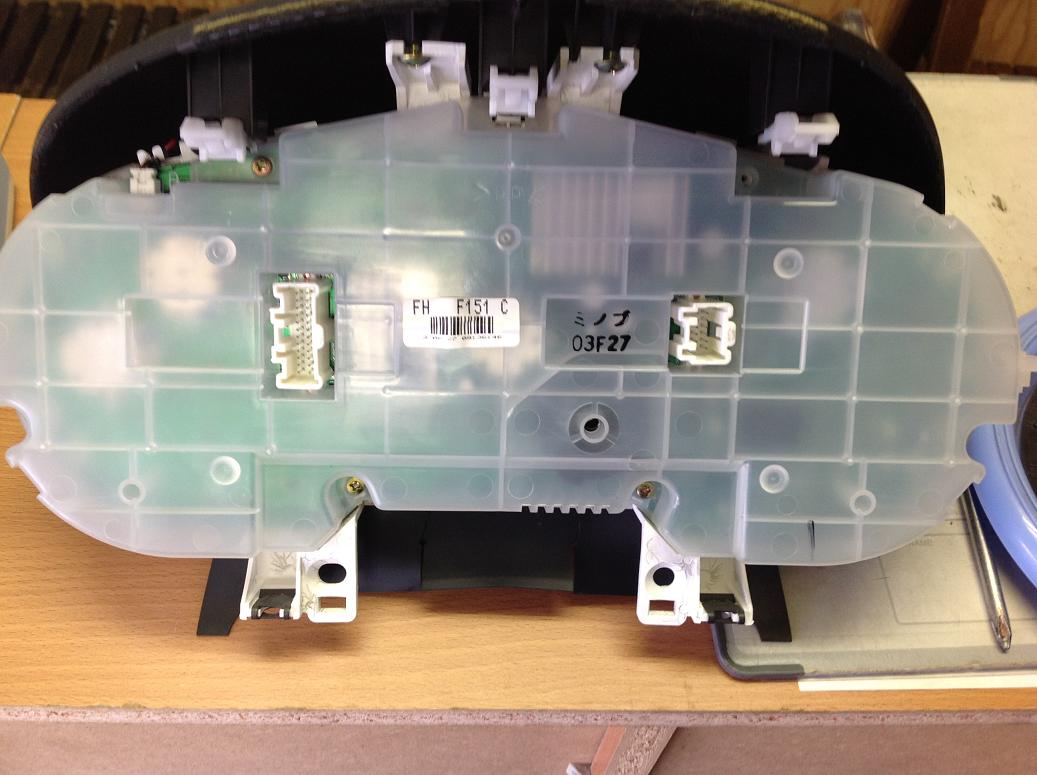 代替策として、メーターパネルに透過性のシールを貼る方法にしました。