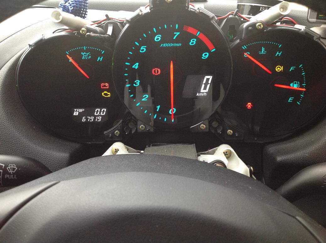 純正は青からエンジン始動で赤に変わる演出なんですね~