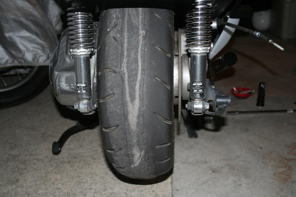 見事にすり減ったリアタイヤ。