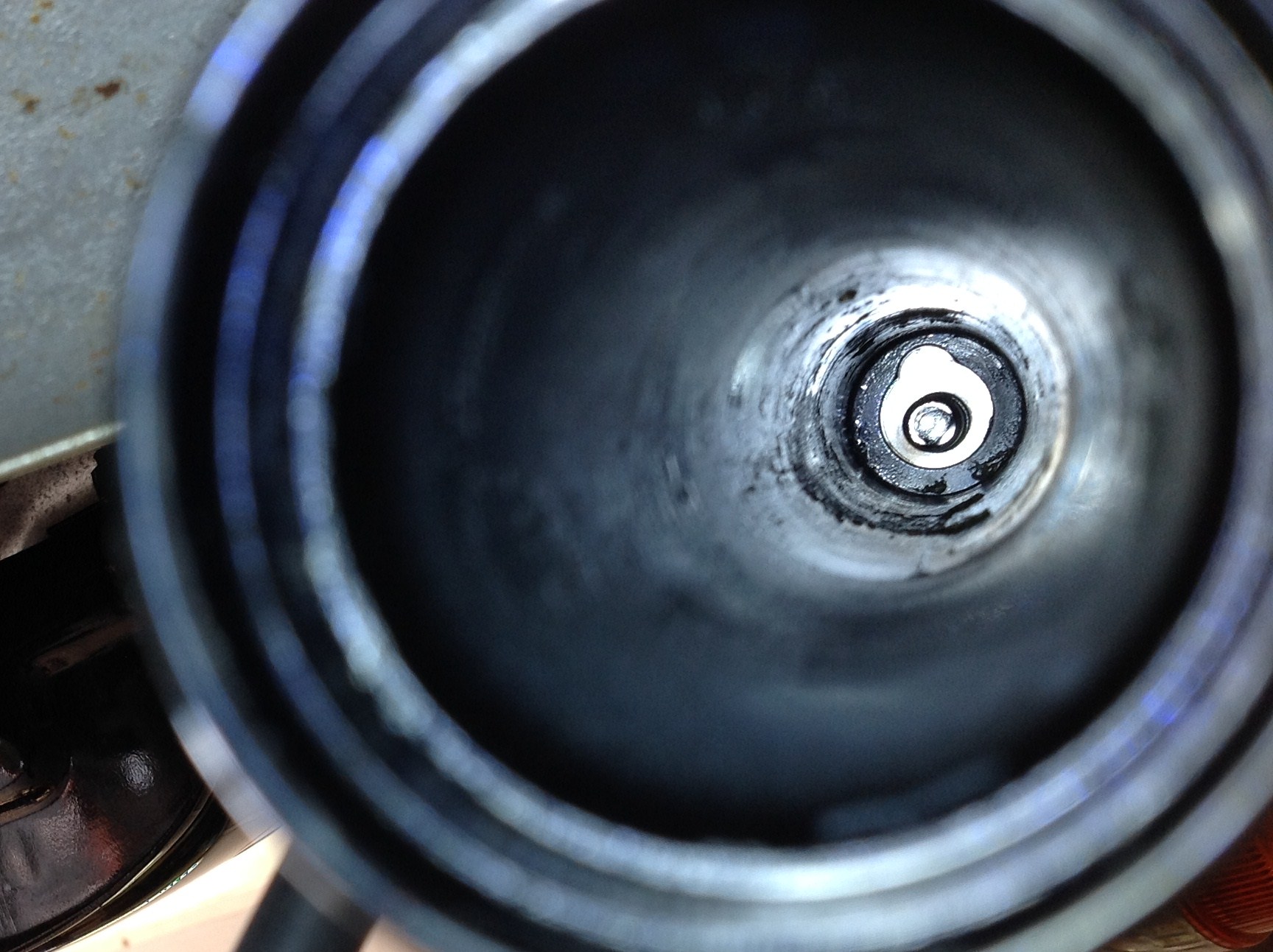 画像中央の黒い部品です。ピンポンチで半分くらいまで打ち抜いた状態