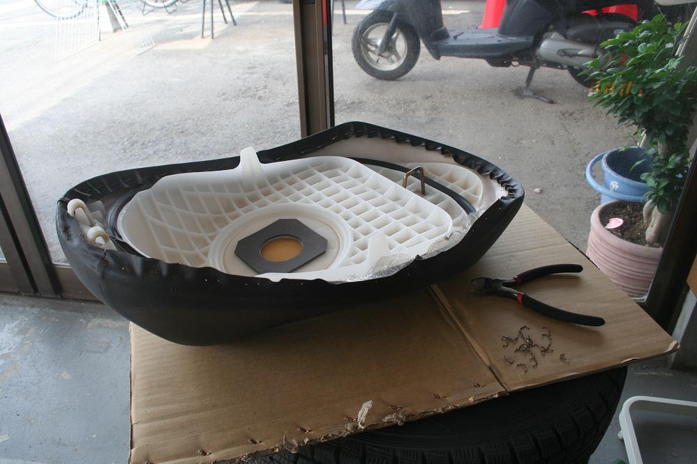 ビニールと新しい表皮をかぶせて、シワにならない様に